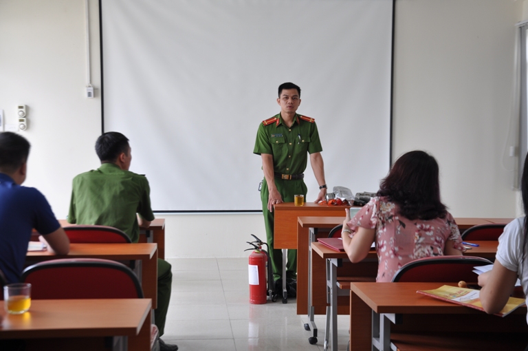 Sau phần phổ biến lý thuyết, dưới sự hướng dẫn của Phòng Cảnh sát PCCC thành phố, các cán bộ nhân viên Viện Kiến trúc Quốc gia đã được thực hành cách sử dụng các phương tiện bình CO2 để dập tắt đám cháy và cách thức xử lý nhanh các tình huống có thể xảy ra.